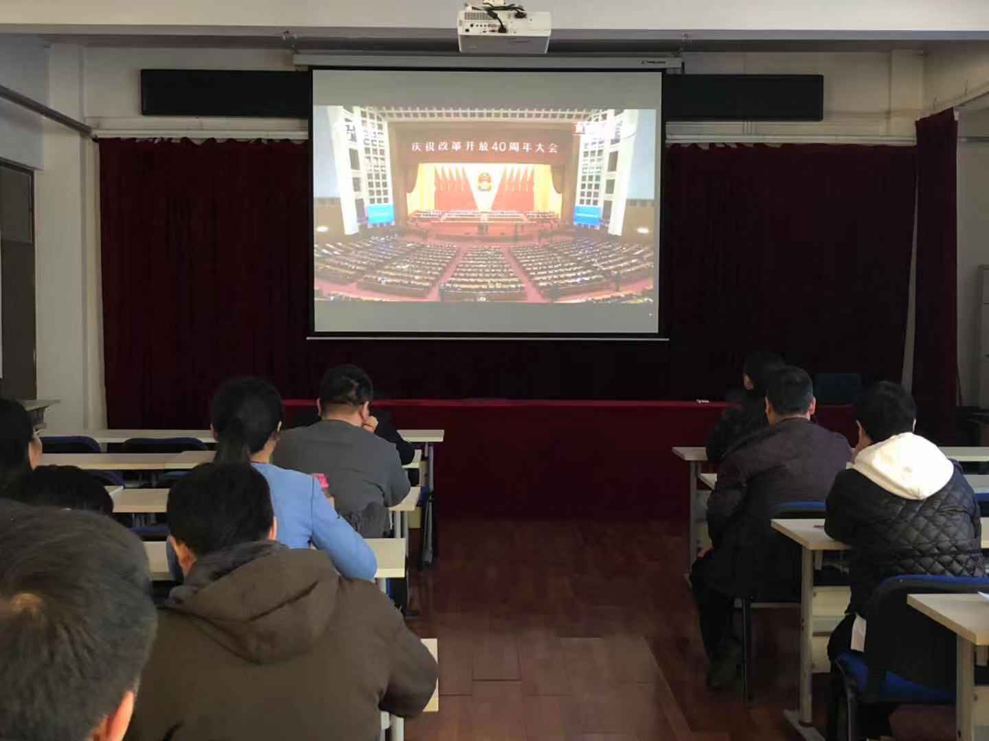 12月18日上午10点在2号实验楼543会议室,BV伟德官方网站部分教工及员工代表集体收看了中央庆祝改革开放40周年大会。