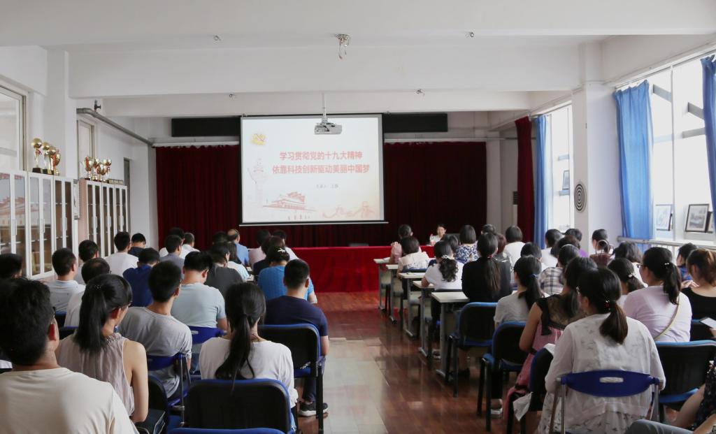 2018年 7月6日下午,党的十九大代表、河南省科学院化学研究所有限公司副研究员王静同志应邀来BV伟德官方网站做“学习贯彻党的十九大精神,依靠科技创新驱动美丽中国梦”专题讲座,公司党委组织部副部长刘程与公司教师及部分员工代表参加。报告会由材料与化工公司党总支书记杨佩主持。