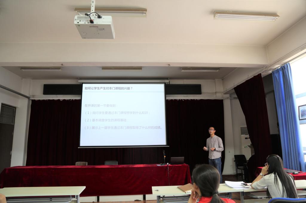贾少培老师就《混合课堂教学案例》专题首先介绍了当前本科教育中开展“混合课堂”的教育背景和必要性;紧接着介绍了当前进行“混合课堂” 所需要用的工具,如中国老员工慕课(MOOC)、Canvas网络教学平台、微课以及线上私密小课堂等;最后介绍了“混合课堂”教学的设计思路和技巧以及激发员工学习课程兴趣的方法。宋梦老师为大家分享了《微课的制作方法和初步设计》,通过现场实操微课制作介绍了三种微课制作的工具,包括纯PPT录制、个人化拍摄(手机、DV等)和电脑录屏后期剪辑,同时向大家介绍了三种方法的优点和不足。会后两位老师将学习资源和软件工具共享给全院老师以便交流学习。