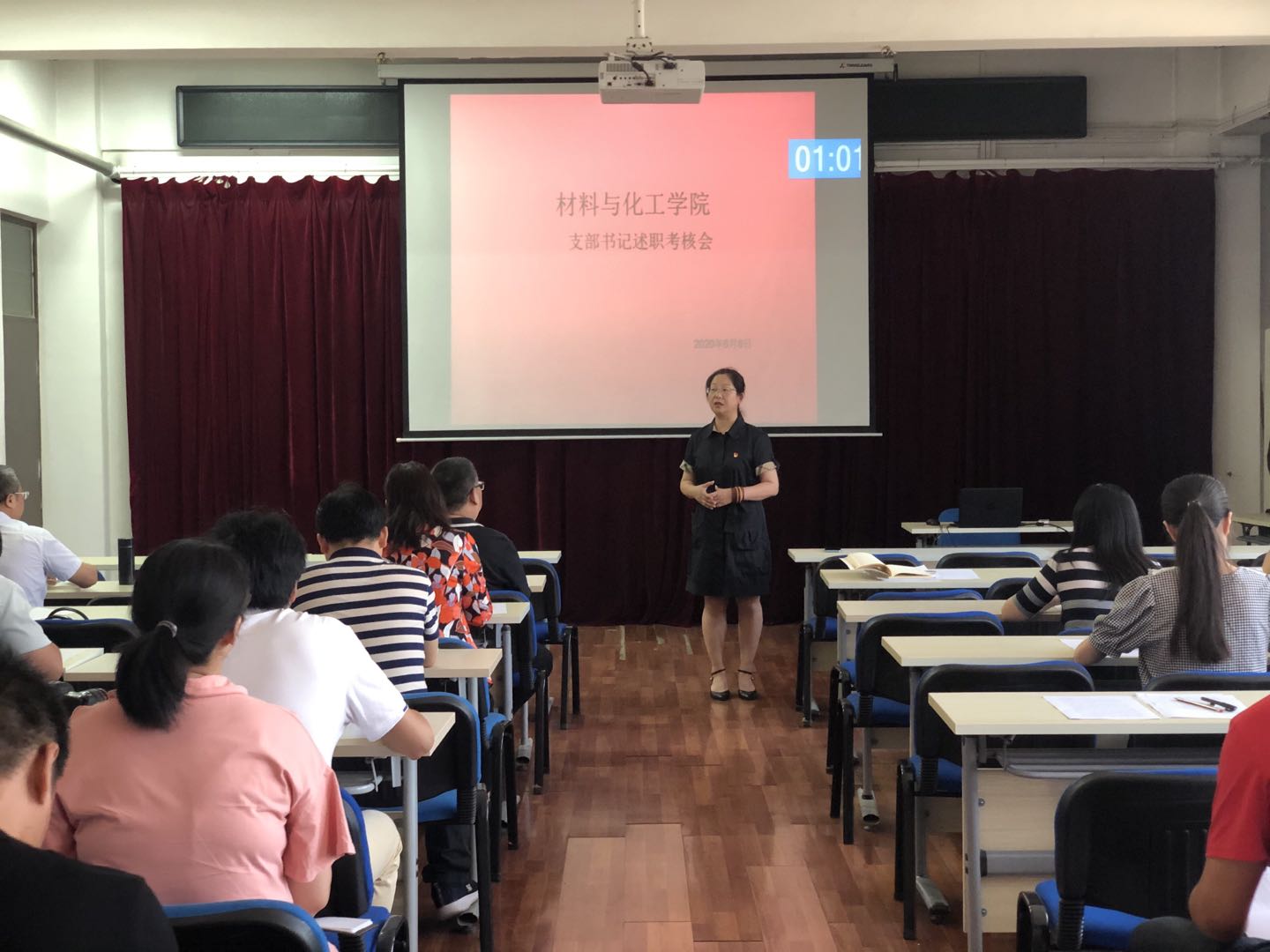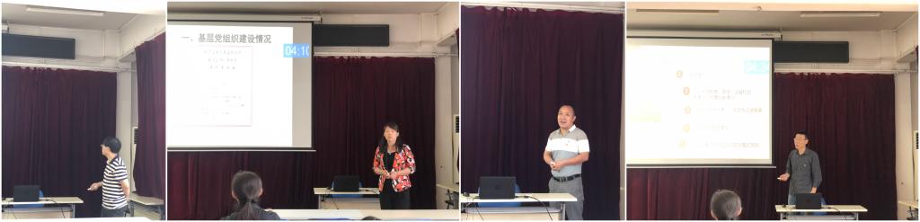 7位教工党支部书记和5位学生党支部书记进行了现场述职,从开展“不忘初心、牢记使命”主题教育情况;支部党员教育、管理、监督和服务情况,党费收缴情况;落实“三会一课”、谈心谈话、支部书记讲党课、本支部2019年度主题党日活动目标完成情况;支部党建工作存在的问题及整改措施等方面进行了汇报。与会人员对每位党支部书记的述职情况填写考核评价表。
